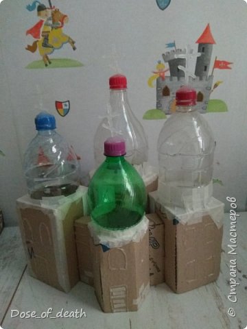 После примерки всех бутылок начинаем обклеивать малярным скотчем.