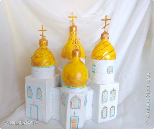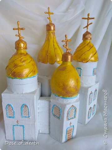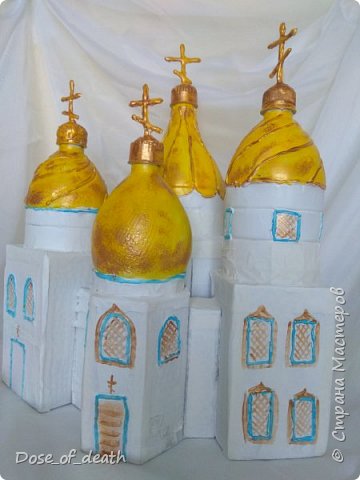 Стоит заметить то, что многие бутылки уже имеют куполообразную форму, это очень сильно облегчает изготовление макетов церквей.